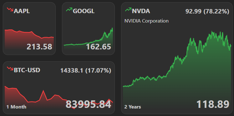 Time range | The time range of the stock price. | 1d , 5d , 1mo , 3mo , 6mo , 1y , 2y , 5y , 10y , ytd , max | 1mo |